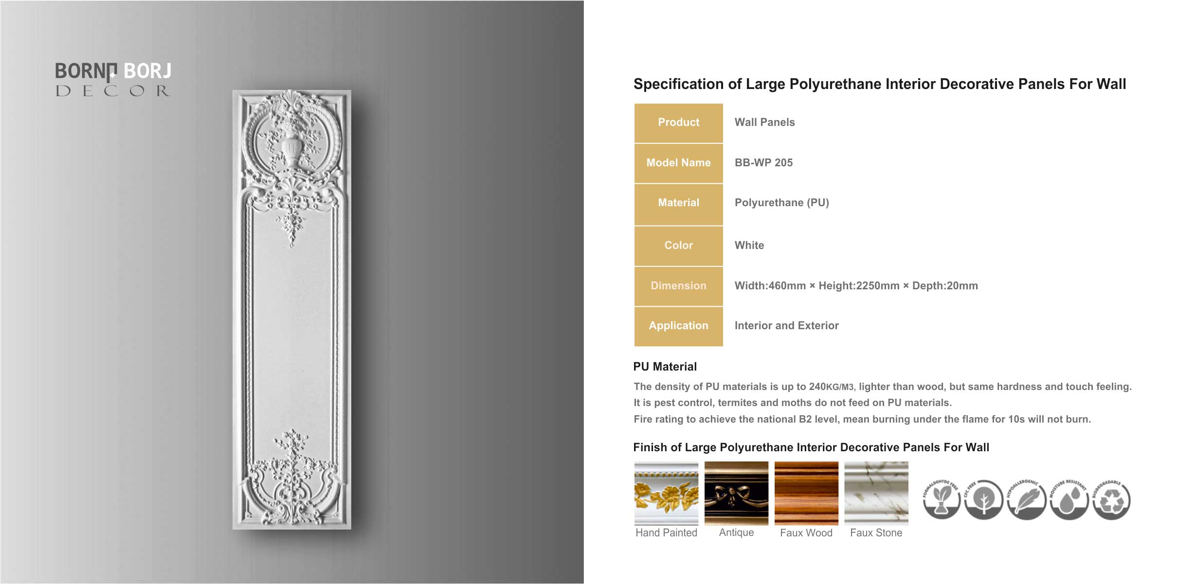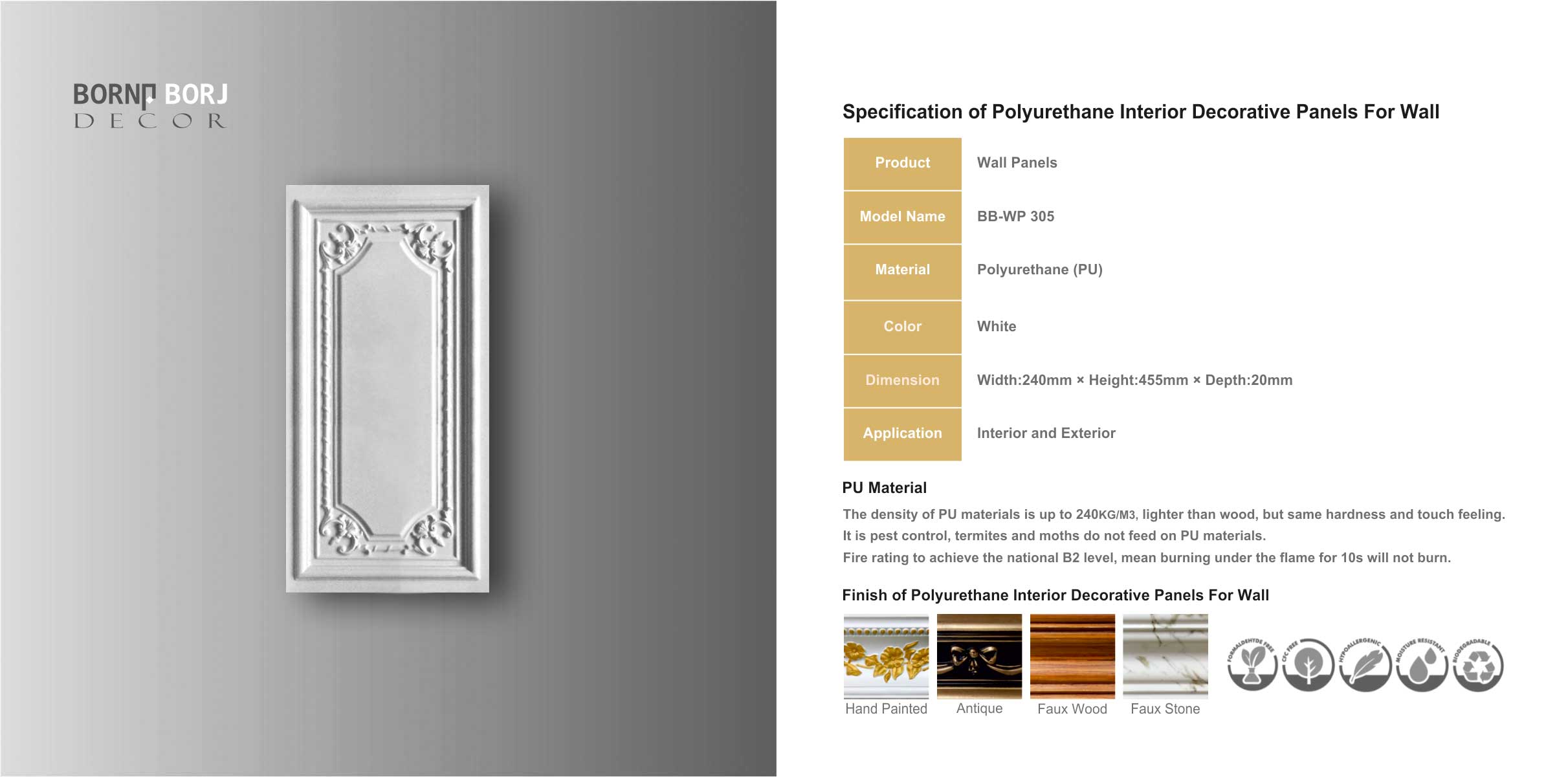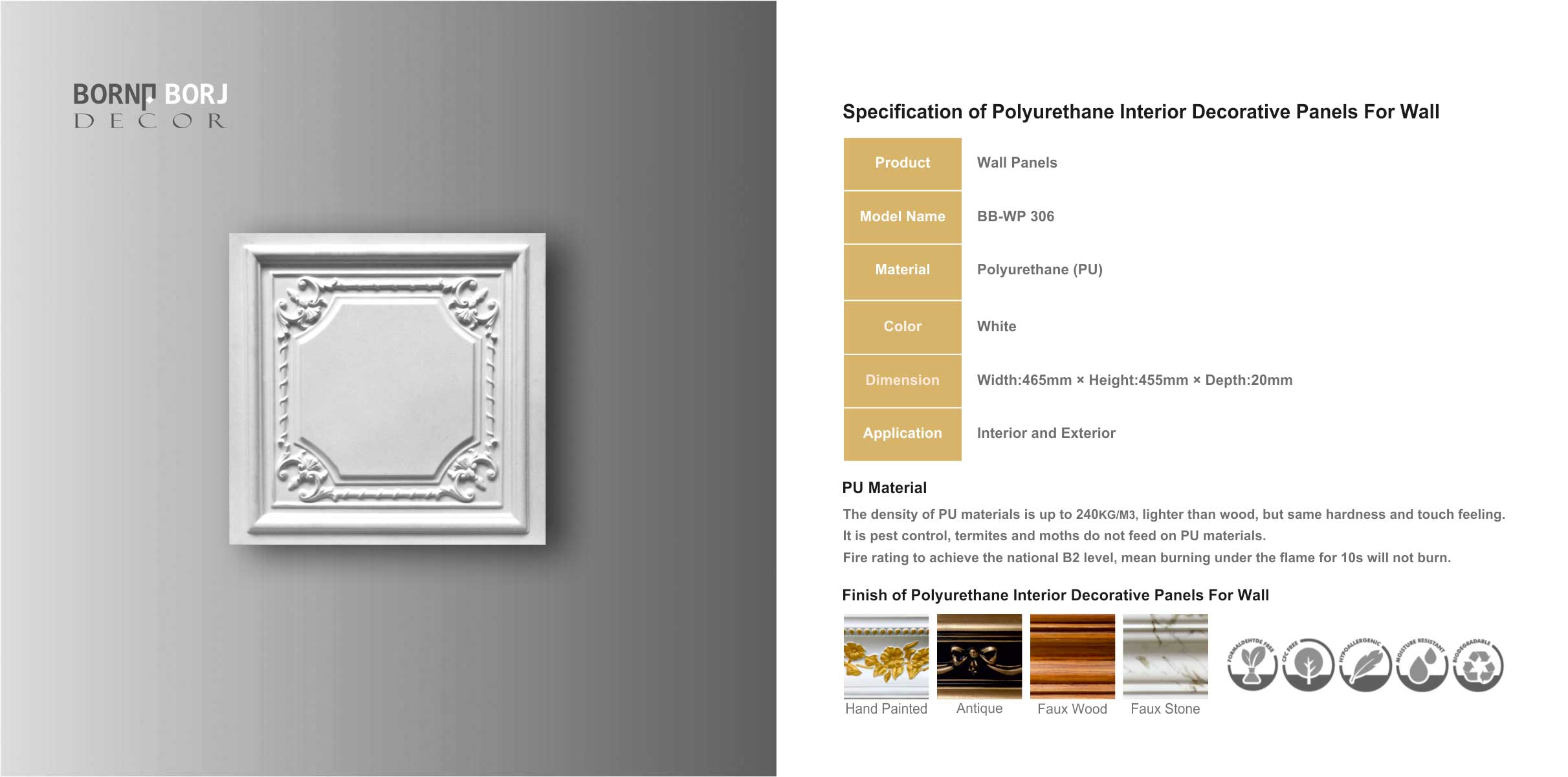 پنل دکوراتیو دیواری مجموعه ای از قطعات دکوراتیو پلی یورتان می باشد که روی یک صفحه و بصورت یک تیکه اجرا شده است. این مجموعه از انواع کادر بندی، گل های موتیف، بردر، قاب تونیک، ستون تخت، قاب آیینه تشکیل شده که امکان جابجایی و تغییر طرح ها را در هر زمان و بدون هیچگونه آسیبی برای شما میسر می نماید.