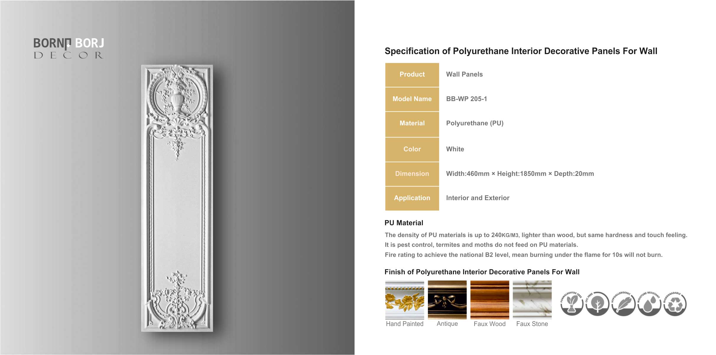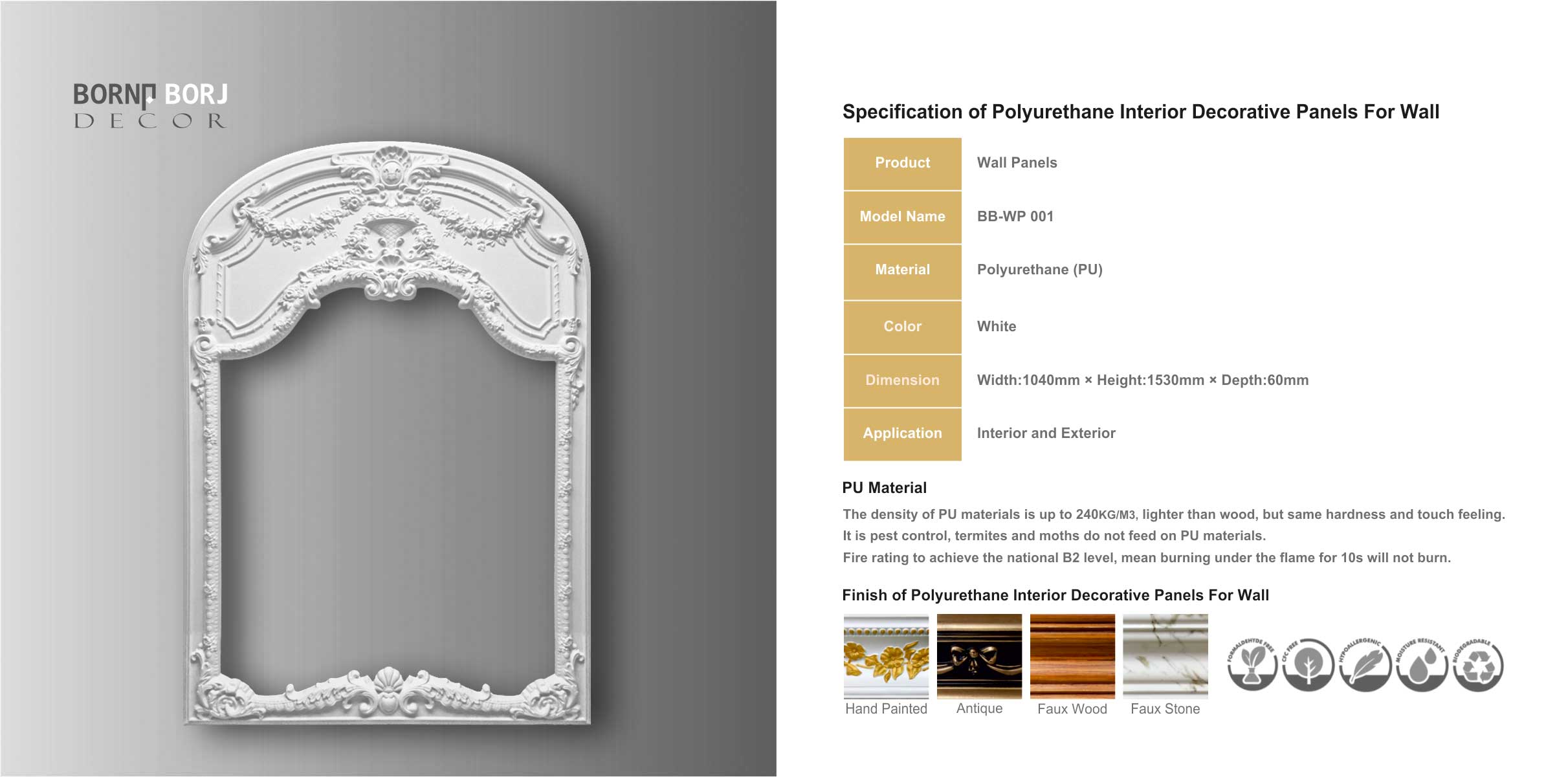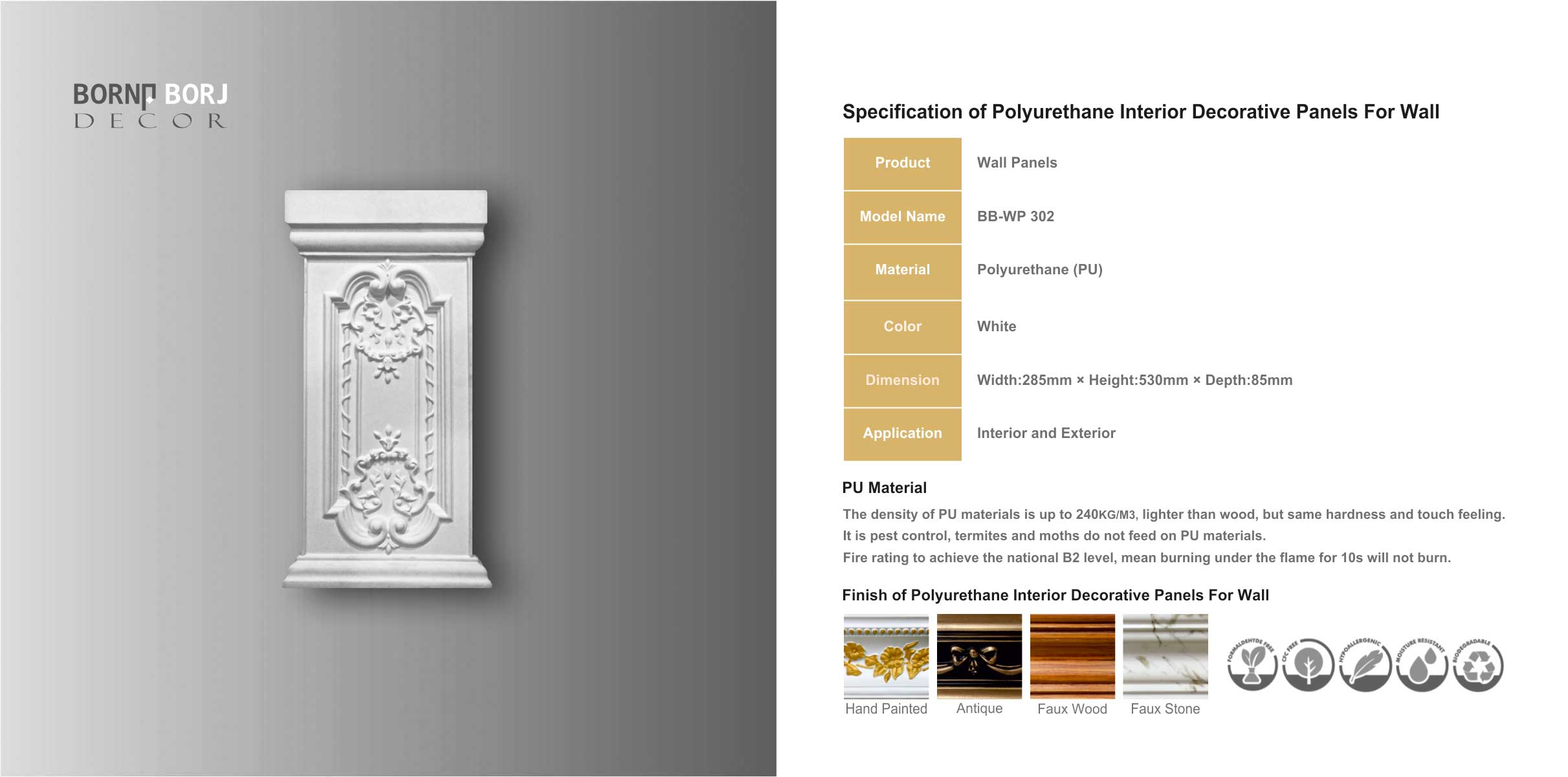 پنل دکوراتیو دیواری مجموعه ای از قطعات دکوراتیو پلی یورتان می باشد که روی یک صفحه و بصورت یک تیکه اجرا شده است. این مجموعه از انواع کادر بندی، گل های موتیف، بردر، قاب تونیک، ستون تخت، قاب آیینه تشکیل شده که امکان جابجایی و تغییر طرح ها را در هر زمان و بدون هیچگونه آسیبی برای شما میسر می نماید.